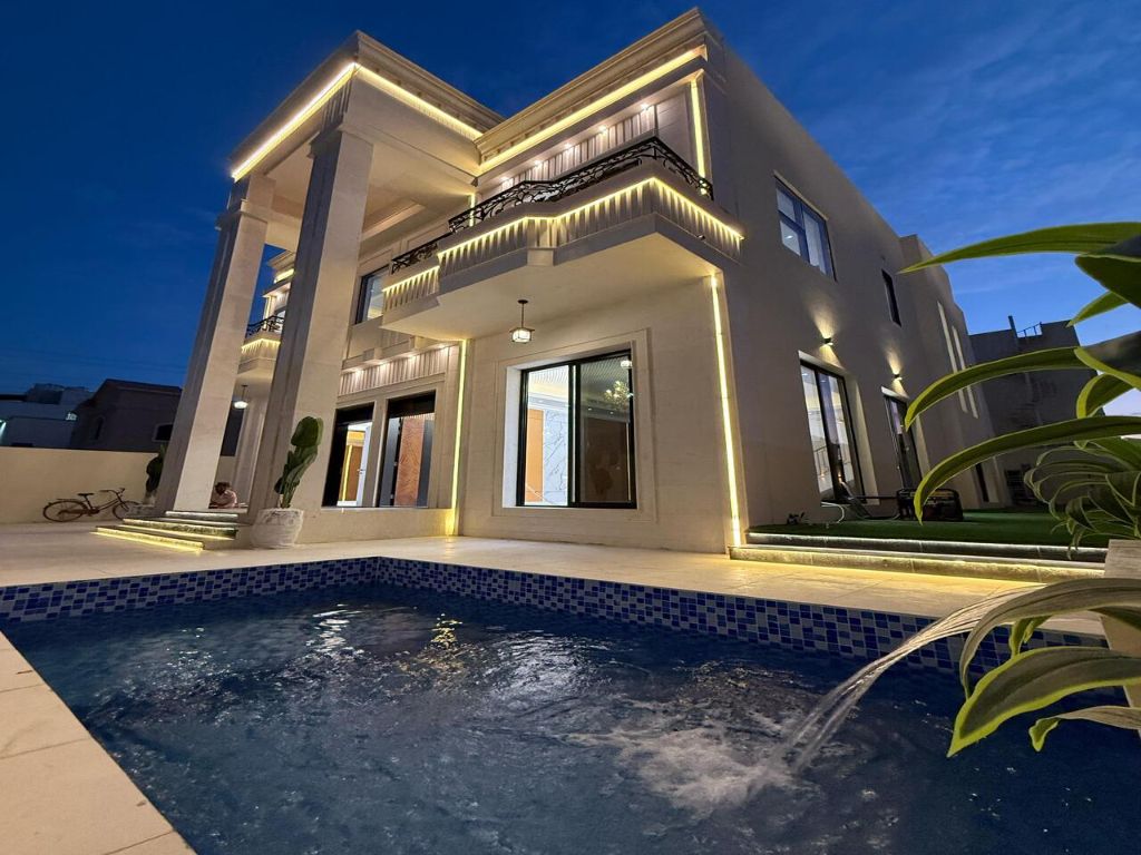 Freehold Ownership Ultra Deluxe Modern 2 Balconies with Open View 5 master bedrooms with built - in wardrobes and ultra - modern finishes 2 luxurious living halls + guest Majlis with private bathroom + upstairs prep kitchen Private swimming pool & side garden + Smart home system + central AC & gas 2 balconies with panoramic views + 5 parking spots (indoor & outdoor) Prime location on a main street