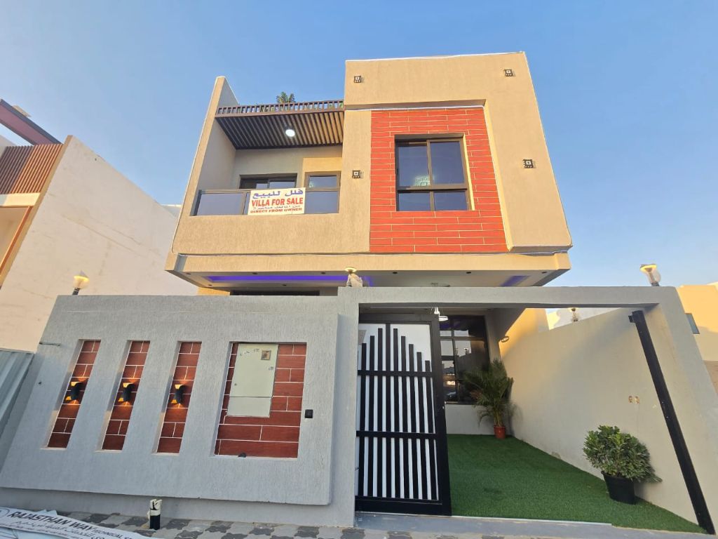 Townhouse for sale in Ajman, Al Zahia Area Two floors with a roof Includes registration fees 5 master bedrooms, a living room, a Majlis (sitting room) a kitchen, and a backyard Price AED1320000 Land area 1770 SqFt. Built - up area 3000 SqFt