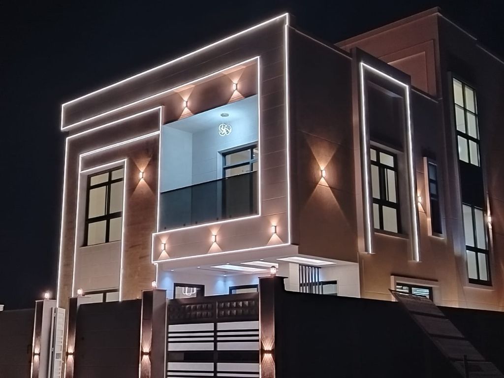 Commission - free and registration - free villa for sale in Ajman, Al Amerah area, Al Waha project, opposite Azha project, close to Emirates Road and Sheikh Mohammed Bin Zayed City Road. Specifications 3 floors, 6 bedrooms (master) men'lounge, 2 living rooms, main kitchen, 2 prep kitchens, maid's room. Land area 3014 square feet. Building area 4000 square feet. Security guard and generator available