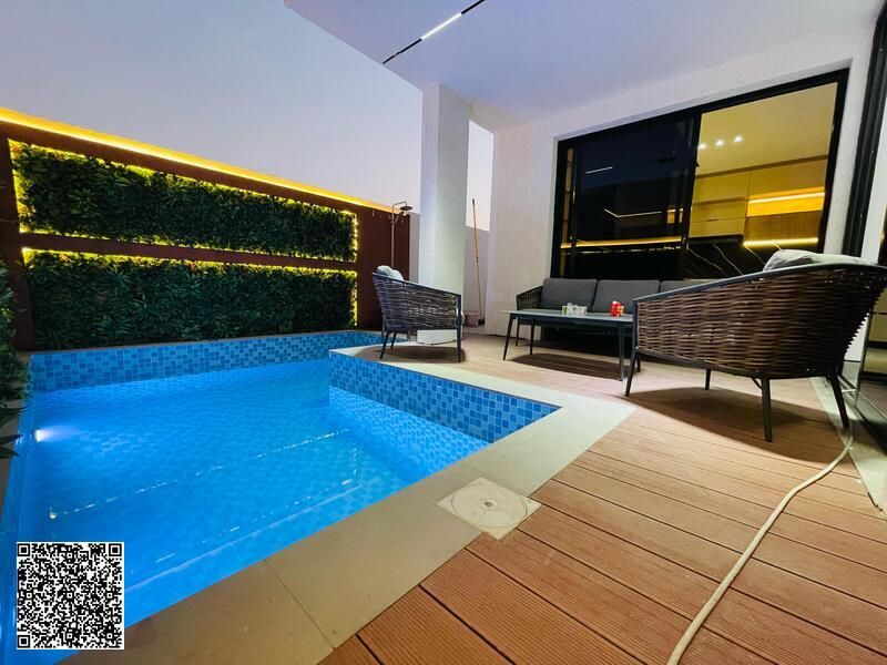 For sale in Al Bahia, Ajman A luxurious and distinctive villa with high - end finishes and first - class materials, with long - term guarantees. The Villa's built - up area is 4200 square feet. The Villa consists of a ground floor and two floors. Ground floor Consists of a large family lounge extending over The Villa, overlooking a swimming pool with cascading waterfalls, a spacious living room, and