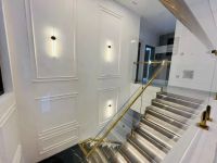 For sale A new, modern villa, ground and first floors. Second plot from Ammar Street. The Villa consists of 5 master bedrooms with wardrobes. Two living rooms, a Majlis, and a maid's room. All rooms have split air conditioning. The kitchen is fully equipped. The first floor includes a preparatory kitchen. The living room has ducted air conditioning, a bathroom, and sinks. The hall has ducted air conditioning