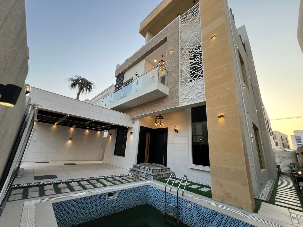 للبيع فيلا سوبر ديلوكس مع مسبح ومصعد، شاملة رسوم التسجيل والكهرباء والماء والتكييف مركزي للبيع فيلا جديدة من ثلاثة طوابق بتشطيبات فاخرة للغاية مع مسبح خاص ومصعد وتكييف مركزي في الحليو 2، عجمان موقع استراتيجي بالقرب من المحلات التجارية وحديقة الحميدية. حديقة أمامية (موقف مزدوج) وفناء خلفي مساحة البناء 4200 قدم مربع. تملك حر لجميع الجنسيات. بدون رسوم خدمات مدى الحياة. واجهة الفيلا مصنوعة من الحجر