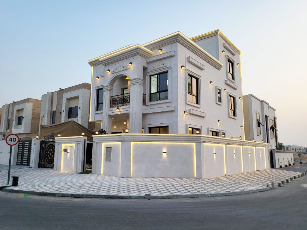 Corner Villa for sale - Al Helio, Ajman Prime location near Azha Community, in a quiet and upscale area. Luxurious personal finishing with elegant design, ideal for large families. Villa Details Ground + First + Second Floor 7 Master Bedrooms + Maid’s Room Large Majlis with separate bathroom Spacious Living Hall + Kitchen + Balcony Dining Hall with Pantry Kitchen Rooftop Garden for relaxation Plot