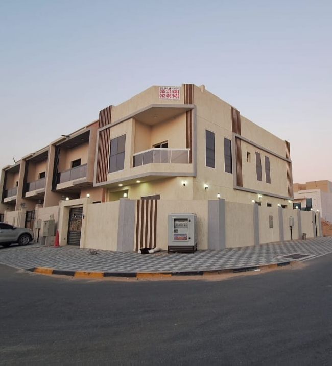 For sale corner townhouse villa in Al Yasmin area. The Villa consists of 3 floors ground, first, and roof. Features 4 master bedrooms. Land area 2165 SqFt, built - up area 2900 SqFt. Price includes electricity, water connections, and air conditioners. Parking space that can accommodate more than 8 cars