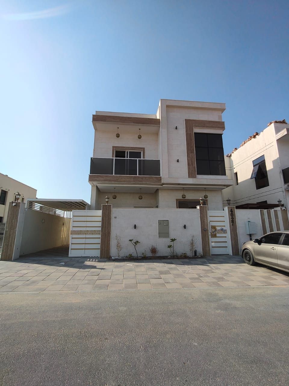 Villa for sale in Al Zahya - Ajman Personal finishing, Super Deluxe Located on a main paved road Includes electricity and water Features Stone façade 5 Master Bedrooms Ground Floor Majlis with bathroom and wash area Large master living hall with upstairs family hall Master bedroom Fully equipped kitchen with cooker, oven, and microwave Maid’s room (master) Yard with car garage First Floor 4 Master