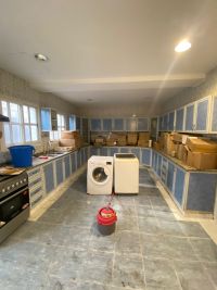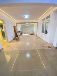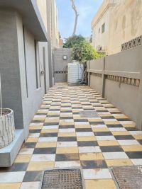 Villa for sale in Al Rafaah, third plot from the sea, with a total area of 3000 SqFt. The ground floor features a hall, Majlis, dining room, kitchen, and storage room, while the first floor includes 3 bedrooms, a prep kitchen, and a living area that can be converted into a fourth bedroom. asking price AED1950000