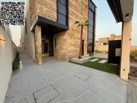 Luxury villa in Al Alia area, stone facade, modern entrance, landscaped exterior and interior. Prime location with a 9 - meter setback + additional parking on the opposite side. Smart access, Smart systems, warranties, and CCTV. One minute from Sheikh Mohammed Bin Zayed City Road. Ownership available to all nationalities. The Villa comprises a Majlis, two living rooms, five master bedrooms, a kitchen
