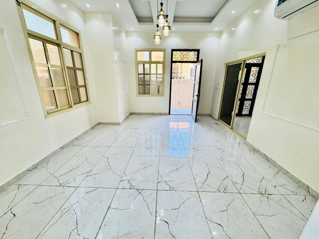 Villa for rent in Al Yasmin area, 5 master bedrooms, living room, Majlis, maid's room, kitchen, and 7 bathrooms. Located near all services on Sheikh Mohammed Bin Zayed City Road. Available in 4 installments