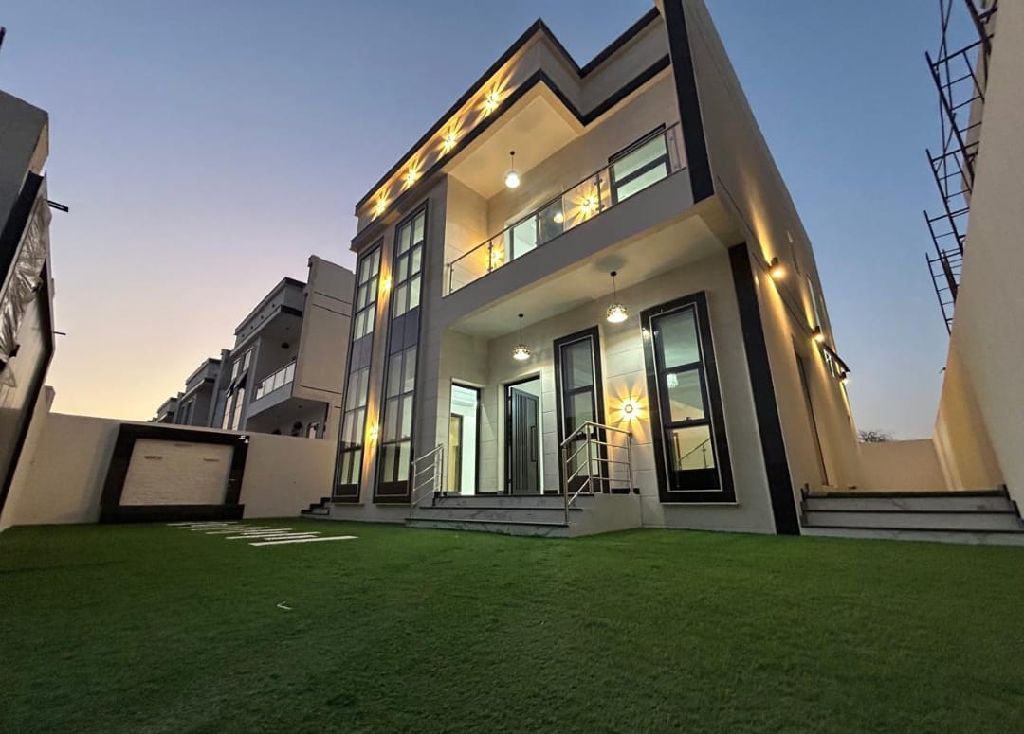 Villa for sale in Ajman Al Helio 3014 sqf G 1 3 master rooms Maid's room Hall Majlis Price 1480000 including transfer fees
