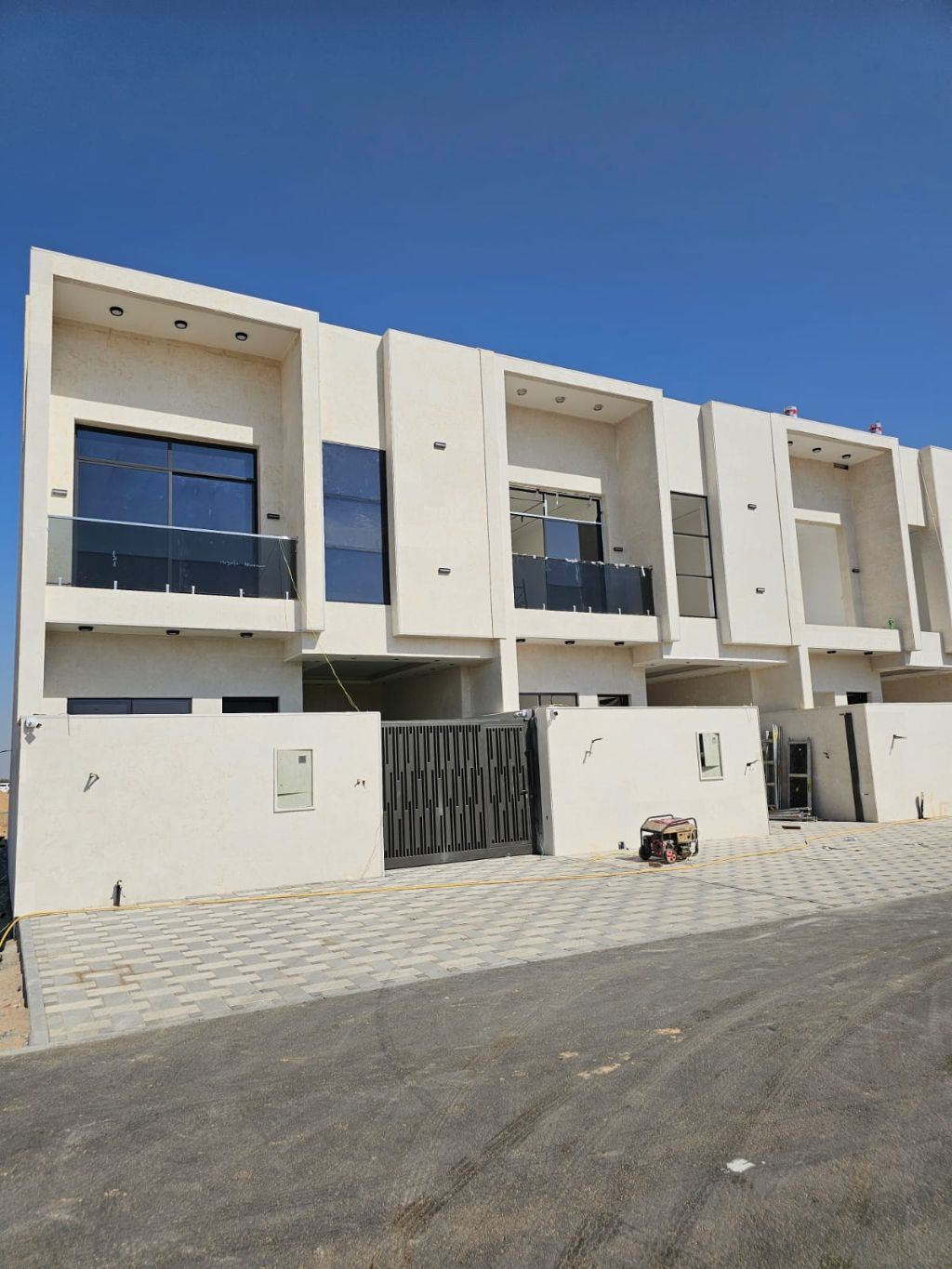 Townhouse for sale in Al Helio 2, Ajman Ground + First + Roof 4 bedrooms, Majlis, 2 living rooms (one on the first floor and a very large living room on the ground floor) large kitchen, maid's room, and roof terrace Price AED1350000 including registration fees