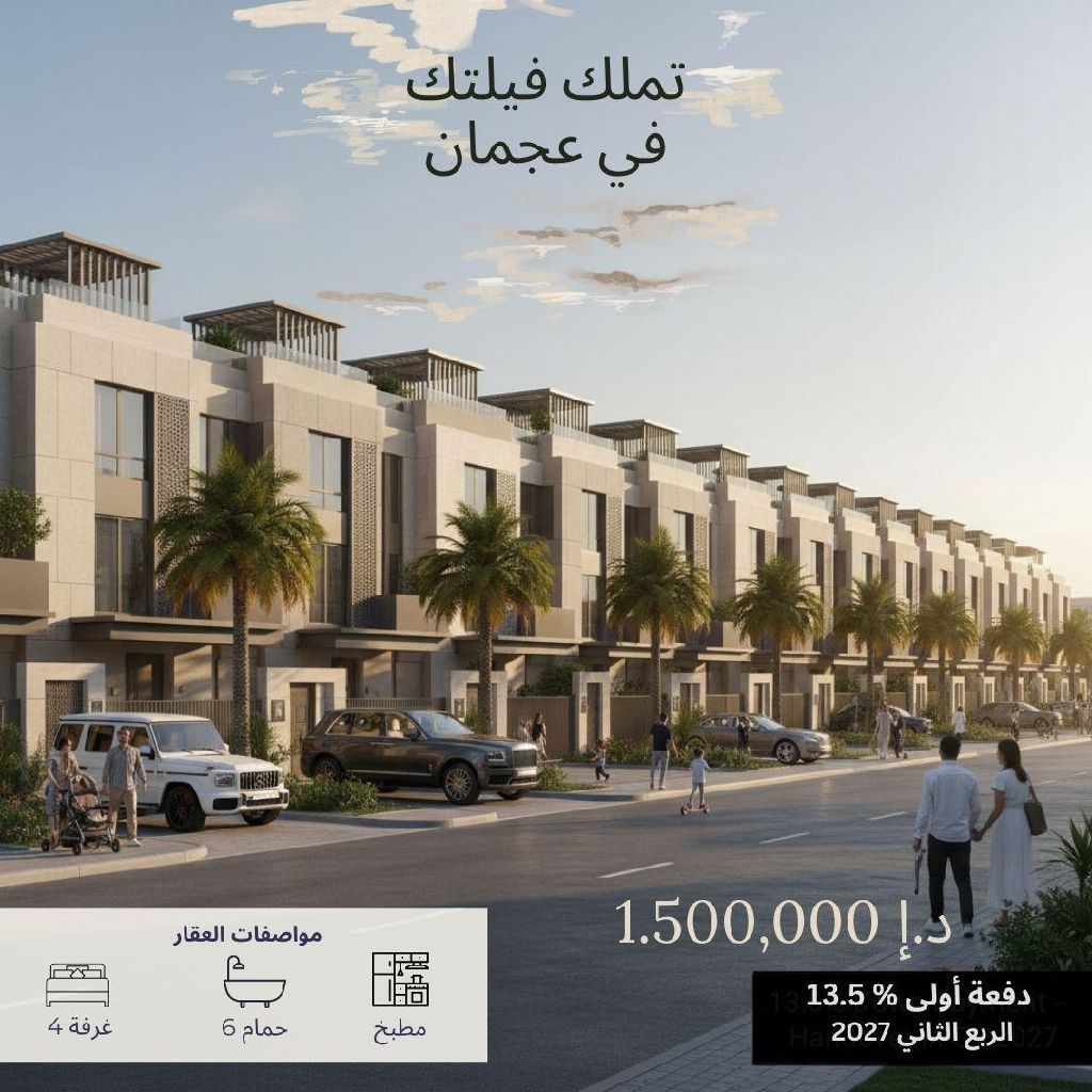 For sale - Luxury Townhouse in Ajman Own a premium townhouse in a strategic location just 3 minutes from Sheikh Mohammed Bin Zayed City Road Property Details 4 bedrooms 6 bathrooms 2 Majlis (sitting rooms) Spacious living hall Private indoor parking Roof terrace Private garden Financial Details Installments up to 3 years Down payment AED200000 Hand