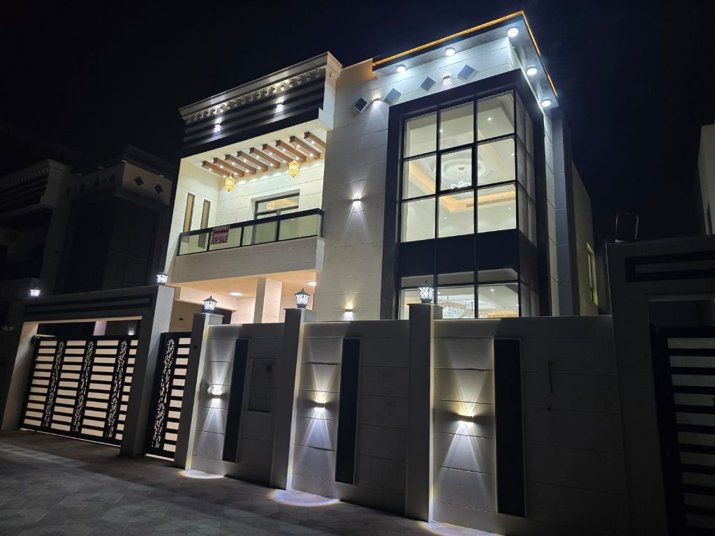 Luxury villa in Al Bahiyah with 5 bedrooms, a living room, a Majlis, and a maid's room. Includes electricity and water, freehold ownership, excellent finishing and decoration. Land area 3014 SqFt Building area 3500 SqFt Ready for handover on the same day of registration
