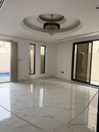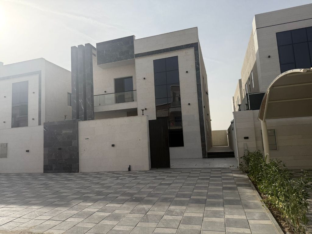 Villa for sale in Al Zahiyah, Ajman. Two floors, first occupancy. Consists of 5 master bedrooms, a master living room, 6 bathrooms, a swimming pool, a balcony, and central air conditioning. Area 4100 SqFt. Two kitchens. asking price AED1500000