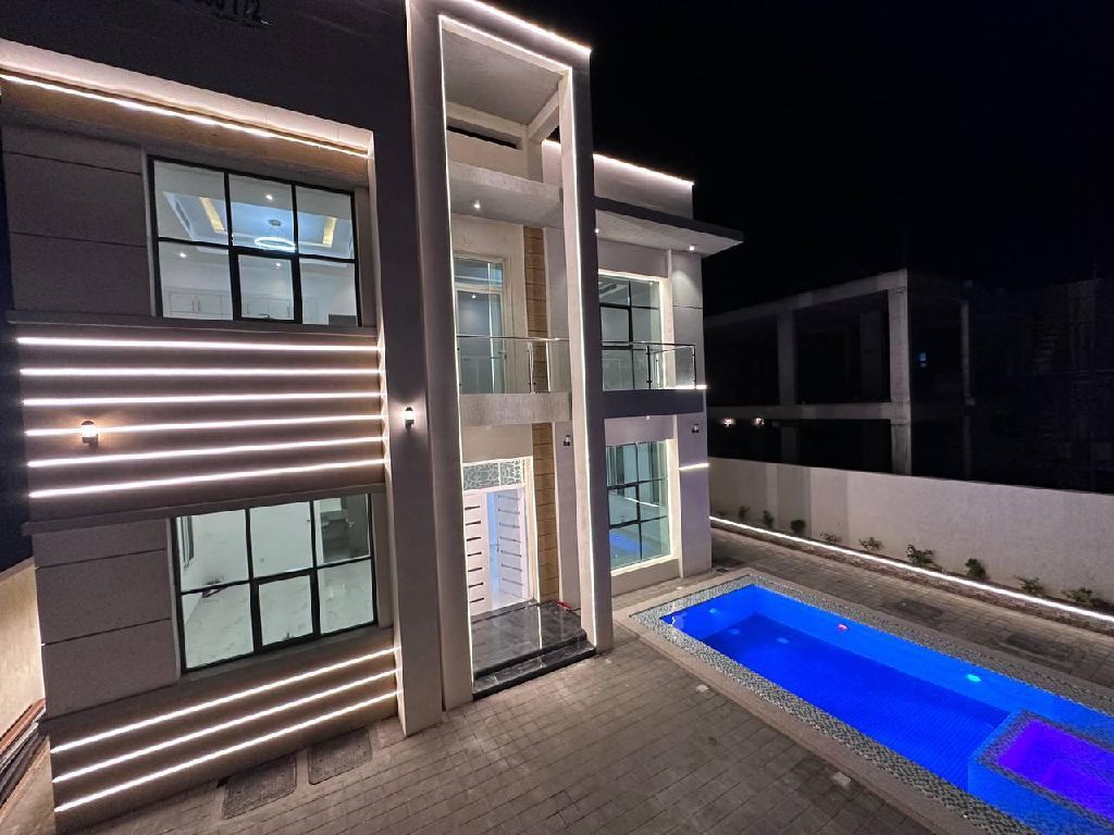 الفيلا مكونة من 8 غرف منهم صالون ومجلس بالاضافة الى غرفة العاملة المنزلية والمساحة الخارجية الواسعة بتحسن توقف 3 سيارات داخل الفيلا و4 خارجها الطابق الأول مكون من 4 غرف ماستر 3 غرف مساحة 4*4 والغرفة الرابعة 4*6 الطابق الأرضي مكون من صالون 6*4 متر والمجلس 8*4 متر مع حمام المطبخ مساحة 5*5 متر مع حمام للمطبخ بالنسبة للسطح يتميز بمساحة واسعة سعر 2 مليون درهم