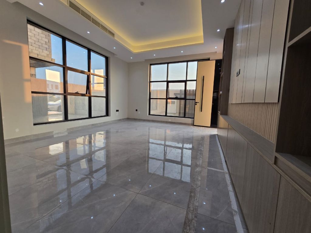 Luxury villa for sale in Al Hoshi, featuring a prime central location directly facing the park. The Villa includes five master bedrooms, a spacious living hall, separate Majlis, maid’s room, laundry room, and an indoor waterfall. Unfurnished with super deluxe finishing. Land area 3150 SqFt. and built - up area 3750 SqFt. asking price AED2750000