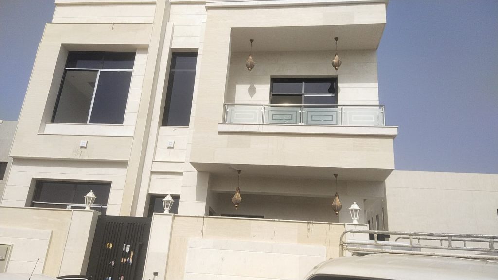 Villa for sale in Al Zahia Ajman Ground floor first floor and roof Villa details 5 master bedrooms 2 large living rooms 7 bathrooms 2 kitchens 2 storage rooms Central air conditioning Area Land area 3014 SQM Building area 4000 square feet Price asking price AED1850000 Slightly negotiable Registration fees not included Including air conditioners For contact and negotiation