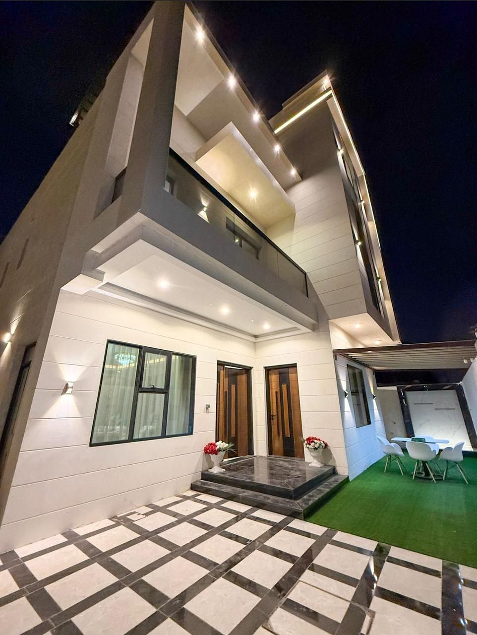 فيلا للبيع في منطقة العامرة نم ساحة الأرض 3014 قدم ومساحة البناء 4300 قدم، تتكون من 6 غرف ماستر، حوش واسع، مطبخ خارجي اضافي، مؤثثة بالكامل مع ديكورات وعفش، مظلة سيارات تسع لأربع مركبات، مظلة على التراس والسعر 2400000 شامل الكهرباء والماء والمكيفات