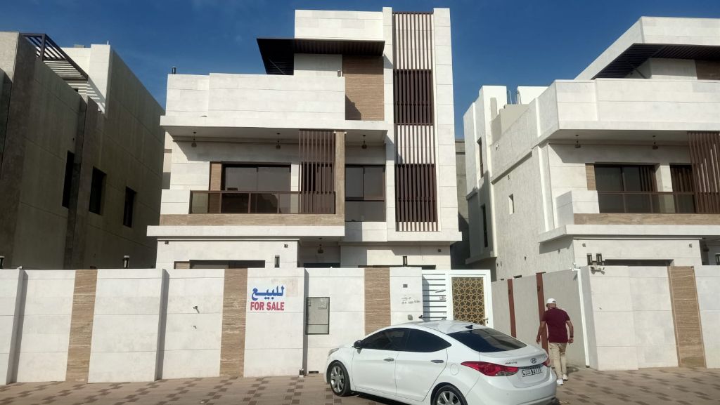 Luxury Villa for sale in Al Bahia, Ajman Land size 3014 SqFt Built up area 3600 SqFt 3 floors 5 master bedrooms Large Majlis Spacious hall Fully equipped main kitchen Preparatory kitchen on first floor and roof Central AC CCTV system Intercom Sound system Fully equipped WiFi Prime location Price AED1850000 including registration and ownership fees