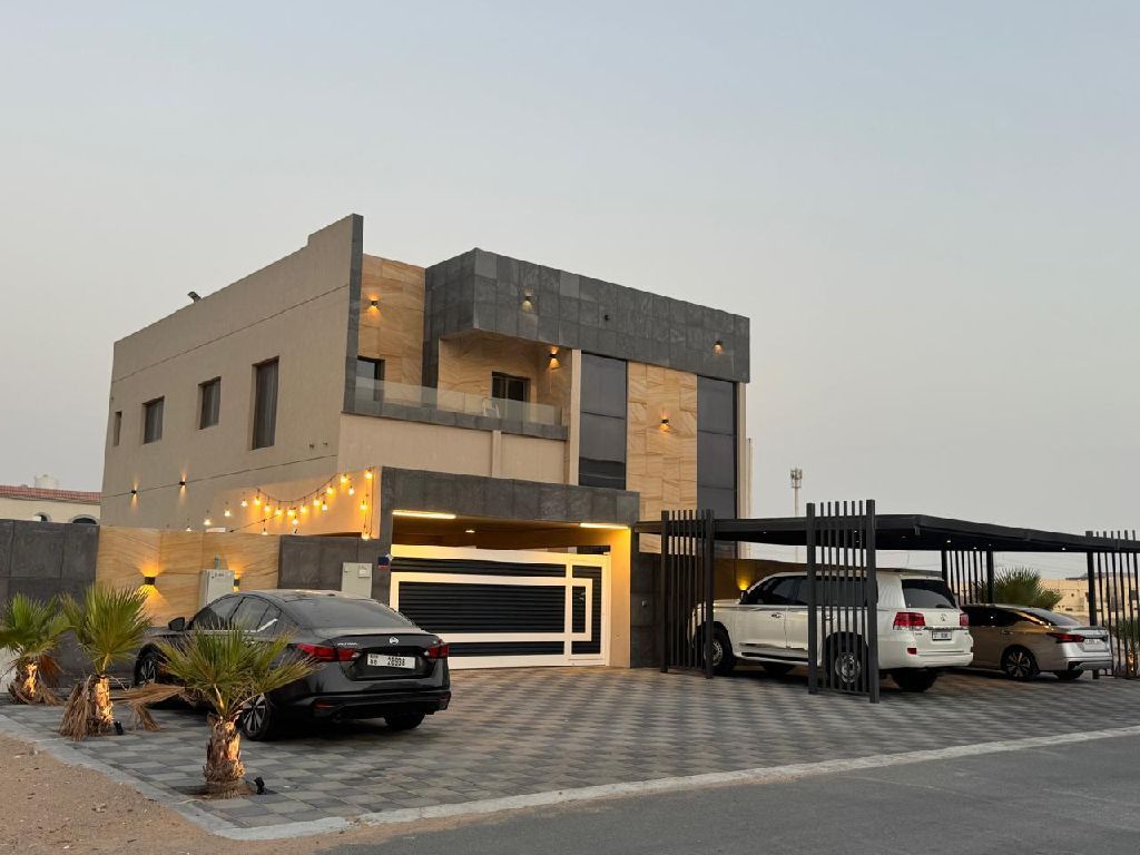 Luxury freehold villa for sale in Al Helio 1, Ajman, located in a quiet residential area with easy access to Dubai and nearby services. Land area is 5300 SqFt and includes 5 master bedrooms with private bathrooms, a maid’s room with bath, totaling 6 bathrooms. The Villa offers parking for 5 cars, including 2 inside and 3 outside. Price AED2600000. The East is always creative