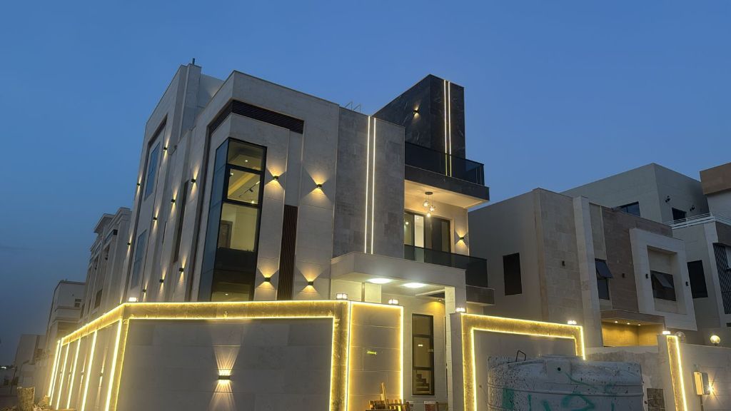 Luxury new villa for sale Land area 3000 SqFt. Built - up area 3724 SqFt. 2 Floors + Roof Property details Majlis 2 Living Halls 6 Master Bedrooms 8 Bathrooms Maid’s Room Private Yard Unique design - Deluxe finishing Price AED2000000