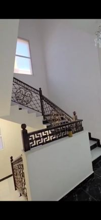 5 master bedrooms, 6 bathrooms, Majlis (formal sitting room) 2 living rooms (one downstairs and one upstairs) maid's room, kitchen, OGeneral air conditioners, awnings at the front and back of the house. Area 5000 SqFt. Price 2400000
