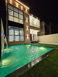 للبيع فيلا مودرن حجر مع مسبح والكهرباء ومكيفات في منطقة الحليو 2 في عجمان المساحة الأرض بقدم 4000 قدم المساحة البناء بقدم 4300 قدم تتكون الفيلا من طابقين التصريح G 1 5 - غرف نوم ماستر 7 - حمامات كبار 2 - صالة 1 - مجلس 1 - مطبخ 1 - مسبح 1 - حوش 1 - غرفة خادمة 1 - موقف السيارات السعر 2400000 مليون قابل التفاوض تملك حر لجميع الجنسيات