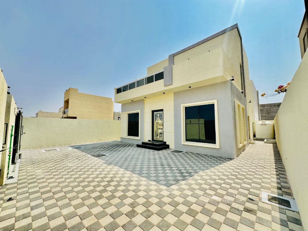 Villa for sale in Al Zahia Ajman prime location quiet area close to all services includes 3 master bedrooms open Majlis with living hall modern kitchen one and half floor plot size 3014 SqFt large internal space price AED1300000 including registration fees great opportunity for living or investment