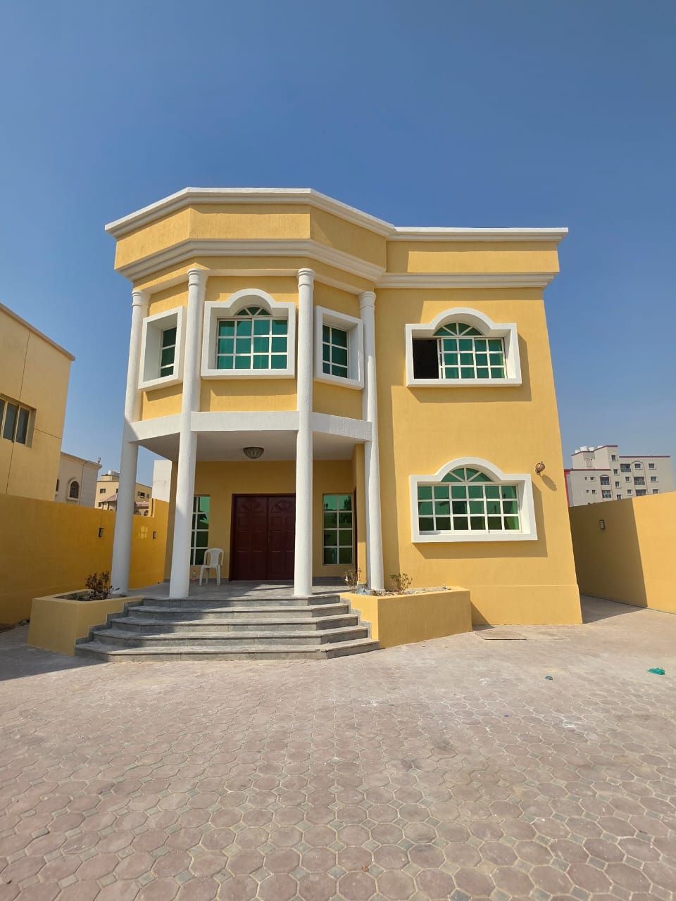 Villa for sale in Al Yasmeen - Ajman prime location close to all amenities villa features 5 bedrooms + maids room Majlis + spacious living room 8 bathrooms equipped kitchen + pantry outdoor garage + back porch excellent finishing land area 3014 SQM built - up area 3500 SQM asking price AED1850000 (negotiable)