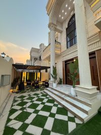 فيلا بمنطقة الحليو 2 مساحة الأرض 3400 مساحة البناء 4300 بناء كلاسيك، حجر أرضي أول ورووف 6 غرف نوم ماستر صالتين مجلس مطبخ الواجهة حجر تصميم كلاسيك تشطيب VIP حديقة خارجيه برقولا مع كراسي حديقة شامل رسوم التسجيل السعر 2250000
