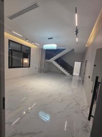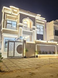 Independent villa for sale in Al Helio 1 Ajman, classic design with stone facade, 3600 SqFt built - up area, ground plus first plus roof, includes 5 master bedrooms and 7 bathrooms, spacious Majlis and hall, main kitchen and prep kitchen, maid master room, central AC, ultra super deluxe finishing, prime location opposite mall, price AED2100000 all inclusive