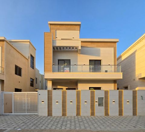 Luxury Villa for sale in Ajman - Al Waha 1 Community, next to Azha and on the first road from the main road. The Villa consists of 3 floors and includes 6 master bedrooms Majlis 2 living rooms Main kitchen + prep kitchen Master maid’s room Plot area 3014 SqFt Built - up area 4000 SqFt asking price AED1850000 including registration fees, negotiable)