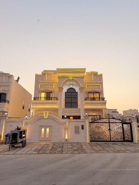 Luxury villa for sale in Al Alia - Ajman Luxurious stone facade with a modern entrance and elegant design Exterior and interior landscapes create an atmosphere of luxury and comfort A very strategic and distinguished location with a 9 - meter front setback + additional parking spaces on the opposite side Smart entry and Smart home systems Surveillance cameras and comprehensive warranties Just one minute