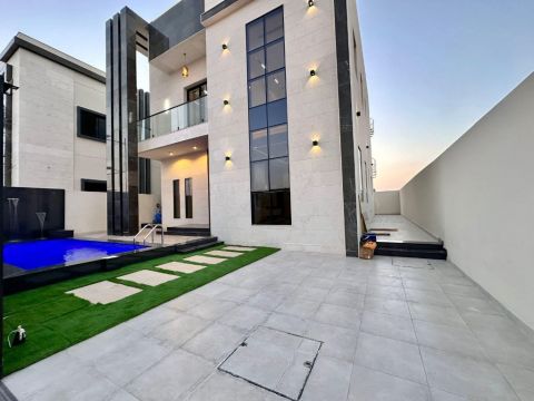 Luxury Villas for sale in Ajman - Al Helio 2 Area A great opportunity to own a modern villa with high - end finishes in one of Ajman's best residential areas. All villas include registration and ownership fees in the price. First Model - Villa with Private Swimming Pool Specifications 6 spacious master bedrooms with modern bathrooms (concealed fixtures) Majlis (formal sitting room) Living room with