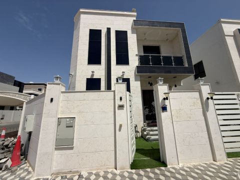 A brand new luxury villa for sale in Al Yasmeen, Ajman. The property features 5 master bedrooms, a spacious living room, a large Majlis, and a fully equipped kitchen. It sits on a 3200 SqFt land with a built - up area of 3800 SqFt. The Villa offers high - quality personal finishing, a modern design, and a corner unit with a large setback area. It also includes an insulated roof with a 25 - year warranty