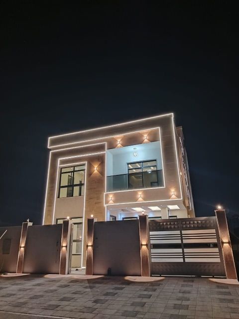 Type Luxury Villa for sale Location Al Zahia - Ajman Size Plot 3500 ft Built - up Area 4300 ft Floors Ground + First + Rooftop Bedrooms 7 Facilities Majlis, Living Room, Prep Kitchen, Open Terrace Air Conditioning Central Elevator Internal Parking Covered space for multiple vehicles Fence Private boundary ensuring full privacy Price AED2250000