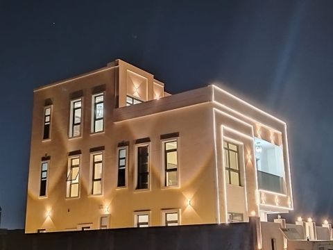 Villa for sale in Ajman, Al Zahia area, super deluxe residential, on the main road. Luxurious finishing and a prime location with parking. The Villa has a custom finish and a modern classic design. Land area approximately 4000 square feet. The Villa contains 5 master bedrooms A living room + a guest lounge with a bathroom and laundry A preparatory kitchen A kitchen with a storage room A maid's