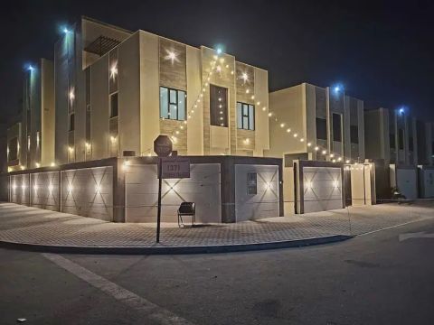 Villa for sale in Ajman, Al Zahia area, super deluxe residential, on the main road. Luxurious finishing and a prime location with parking. The Villa has a custom finish and a modern classic design. Land area approximately 4000 square feet. The Villa contains 5 master bedrooms A living room + a guest lounge with a bathroom and laundry A preparatory kitchen A kitchen with a storage room A maid's