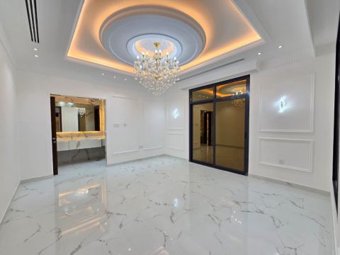 Villa for sale in Al Zahya - Ajman Personal finishing, Super Deluxe Located on a main paved road Includes electricity and water Features Stone façade 5 Master Bedrooms Ground Floor Majlis with bathroom and wash area Large master living hall with upstairs family hall Master bedroom Fully equipped kitchen with cooker, oven, and microwave Maid’s room (master) Yard with car garage First Floor 4 Master