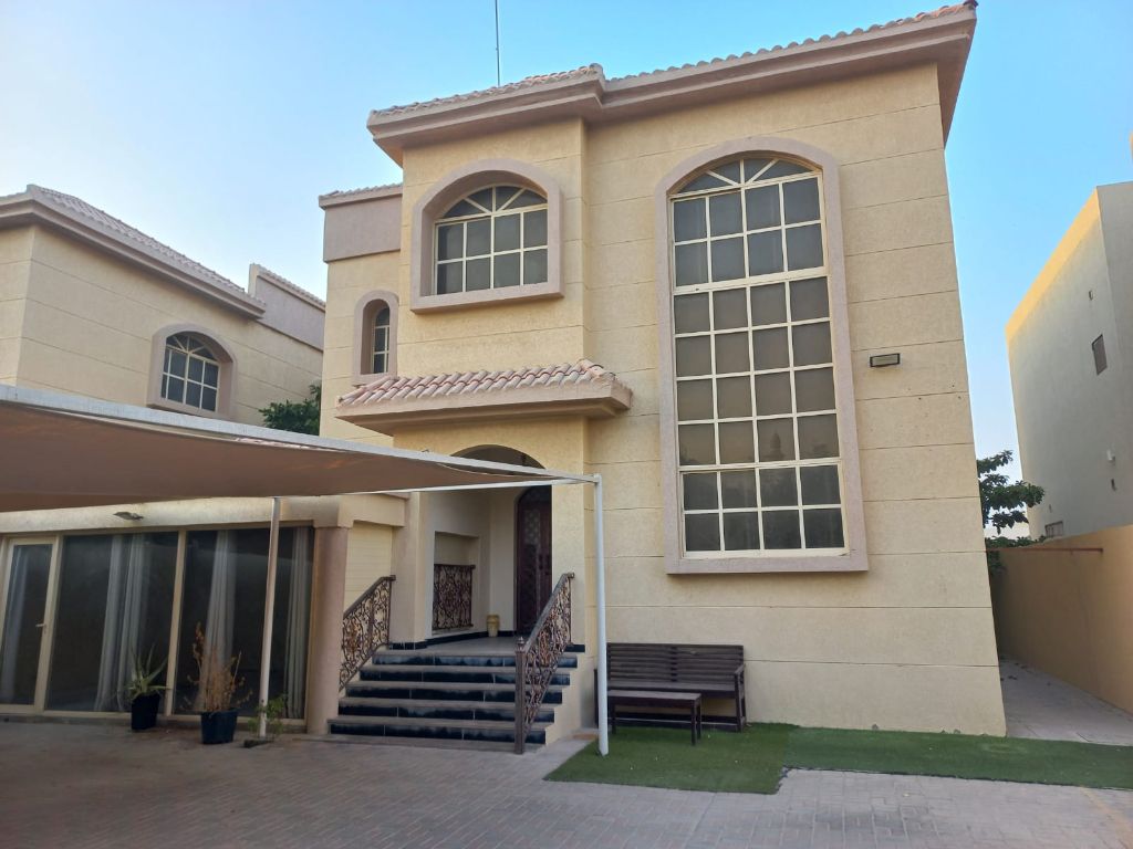 فيلا للإيجار في المويهات 1 - موقع مميز مكونات الفيلا 5 غرف نوم واسعة - مجلس رئيسي + صالتين - غرفة خادمة - مطبخ رئيسي كبير + مطبخ تحضيري - مجلس خارجي مستقل - حوش كبير مغطى + ارتداد ممتاز - مساحة الأرض 5000 قدم السعر 120000 درهم قابل تفاوض على 4 دفعات