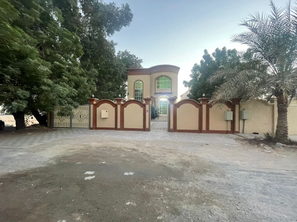 فيلا للإيجار في عجمان منطقة المويهات مكونة من 5 غرف ومجلس وصالة وغرفة خادمة وستور مع ملحق خارجي حوش كبير داخلي مساحة 5000 قدم قريبة من جميع الخدمات أماكن مخصصه للزراعة والشوي مطلوب 90 ألف