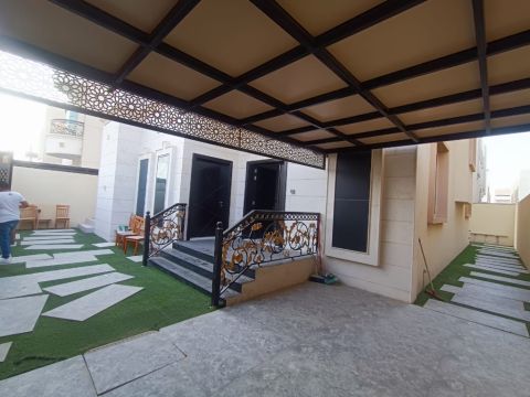 فيلا للإيجار في عجمان منطقة الروضة 2 ثاني قطعة من شارع الشيخ عمار طابقين مع رووف 5 غرف ماستر وصالة ومجلس ومطبخ وغرفة خادمة وحوش الفيلا على شارع اسفلت المساحة 4500 قدم السعر 130 ألف 4 دفعات