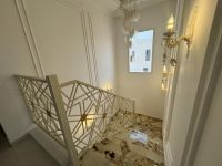 For rent, a first - class villa in Al Zahia, in a prime location opposite a park. 5 master bedrooms, a living room, 2 halls, a kitchen, a maid's room, and a storeroom with air conditioning. Central air conditioning. Citizen electricity