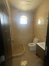 For rent in Al Helio, 5 rooms, a living room, a gym, a maid's room, and a laundry room with kitchen equipment and washing machines for the laundry room. It has a surveillance camera system. It has a sound system. It has a canopy for the external parking. A large setback opposite The Villa. It has a gym