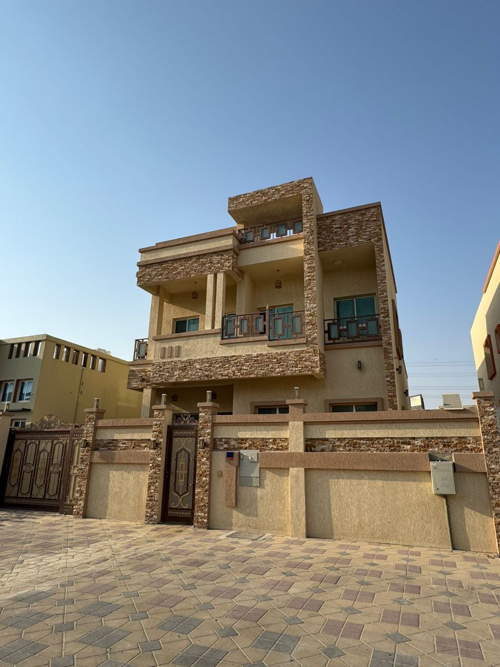 Villa for rent in Al Yasmeen - Brand New, First Tenant Premium stone façade Property Features Ground Floor + First Floor + Rooftop Front setback for parking Private yard with car space Majlis + Living Room 4 Master Bedrooms 6 Bathrooms Fully Equipped Main Kitchen Full Split AC System Balcony rent AED95000 per year 4 Payments Contact us now to schedule a viewing