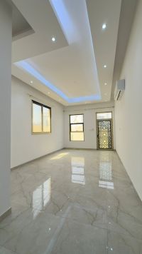 Villa for rent in Al Yasmeen, Ajman 5 bedrooms Hall Majlis Two kitchens Maid's room Air - conditioned Balcony Area 3600 square feet Villa is one year old Price 90000 For inquiries Durrat Al Marjan real estate Office)