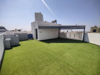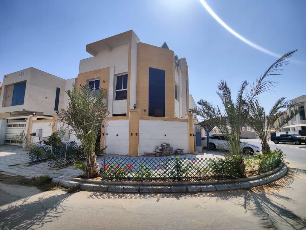 Corner villa for annual rent in Al Yasmeen, Ajman 4000 SqFt Ground floor + first floor + roof 5 master bedrooms, a living room, a hall, a maid's room, and a roof Built - in wardrobes Shaded parking Central air conditioning Roof awning and seating area Price 120000, divided into 4 installments