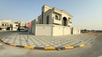 Villa for rent Corner Al Helloy 2 Ajman 5 bedroom Attach Hall Majlis Maid room With AC 2 Kitchen 8 bathroom inside car parking 4000 square feet Price 130000 thousand Villa brand new