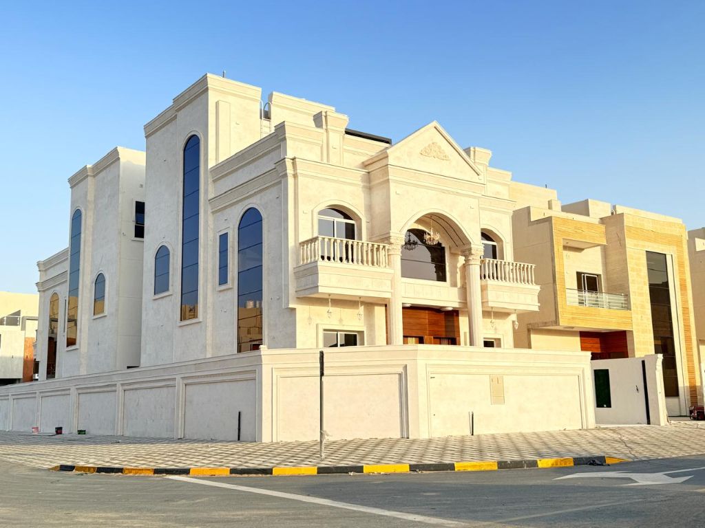 Corner villa for annual rent in Al Helio, Ajman 5 bedrooms, roof, and lounge Electricity and water ready Price 140000