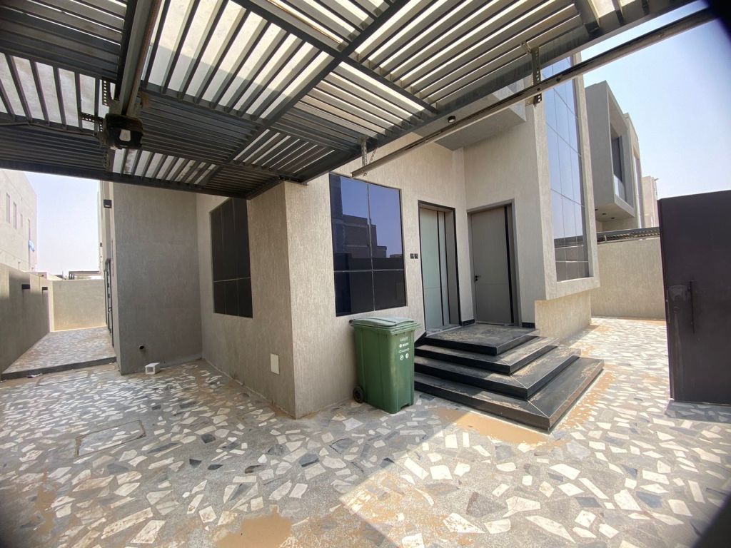 Villa for rent in Ajman Al Zahya area near Mohammed Bin Zayed City Split air conditioners Super deluxe finishing Decorations 4 master bedrooms upstairs + balcony Master lounge with sinks Hall with bathroom Storage Laundry room Maid's room with outdoor bathroom Large kitchen Covered indoor parking Required 95000 final price