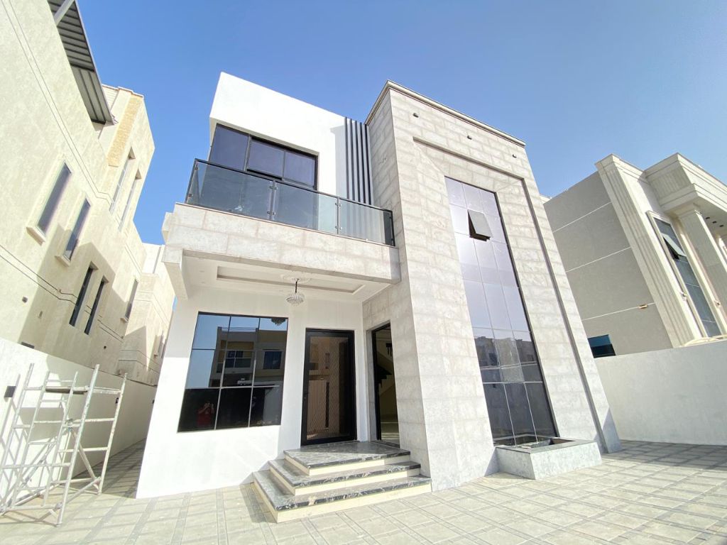 For annual rent in Ajman A standalone villa located in Al Helio 2 The Villa is brand new, first - time occupancy, with super deluxe finishing and a modern interior layout designed for comfort and privacy. The Villa consists of five master bedrooms with a total of eight bathrooms. Upper Floor includes four master bedrooms Each room features built - in wardrobes There is also a balcony providing a nice outdoor